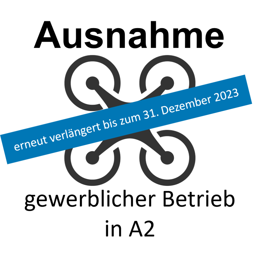 07/14/2023 Ausnahmebestimmung zum gewerblichen UAS Betrieb bis 31. Dezember 202307/14/2023Luftfahrt-Bundesamt (LBA) verlängert die Ausnahmebestimmung zum gewerblichen Betrieb von UAS in der offenen Kategorie, Unterkategorie A2Mehr