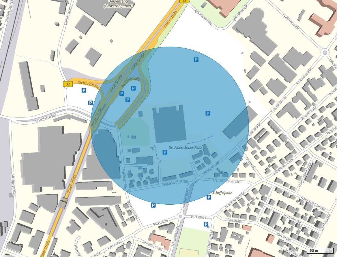 Das Gebiet wird durch einen Kreis mit dem Radius von 185 m (0,1 Nautische Meilen) begrenzt mit dem Mittelpunkt auf der Koordinate 47.79037N 9.6145E und erstreckt sich vom Boden bis 152 m (500 Fuß) über dem Boden.