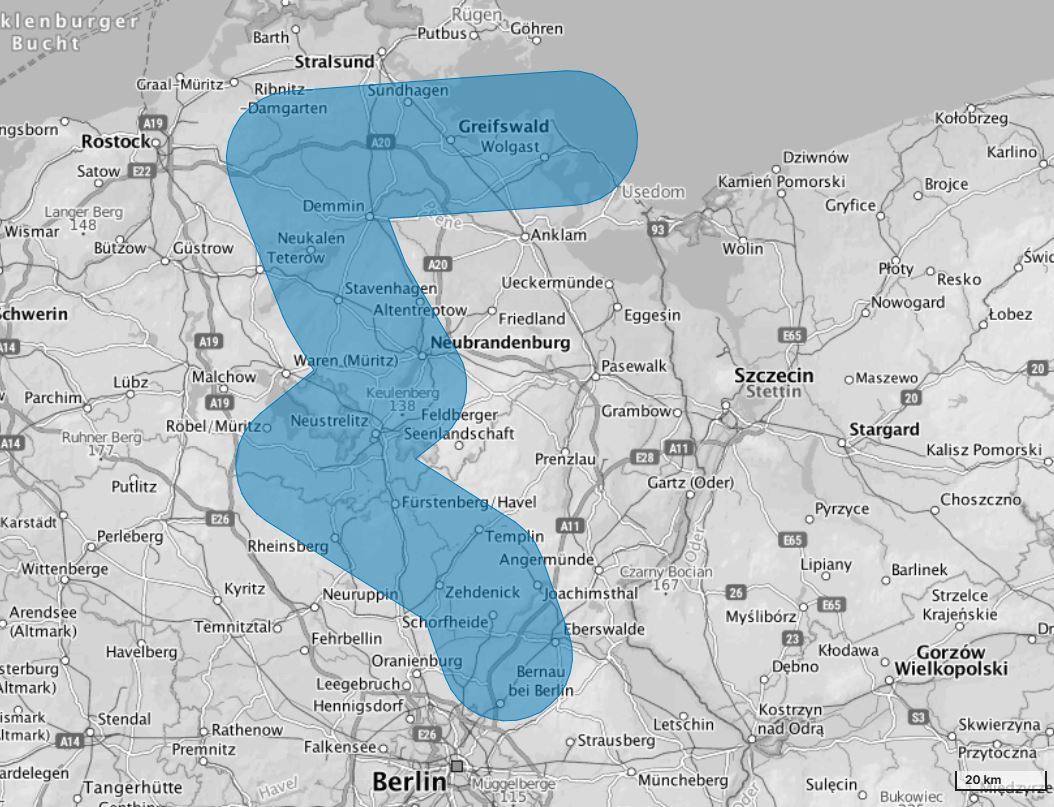 Temporäres Tieffluggebiet in Brandenburg und Mecklenburg-Vorpommern