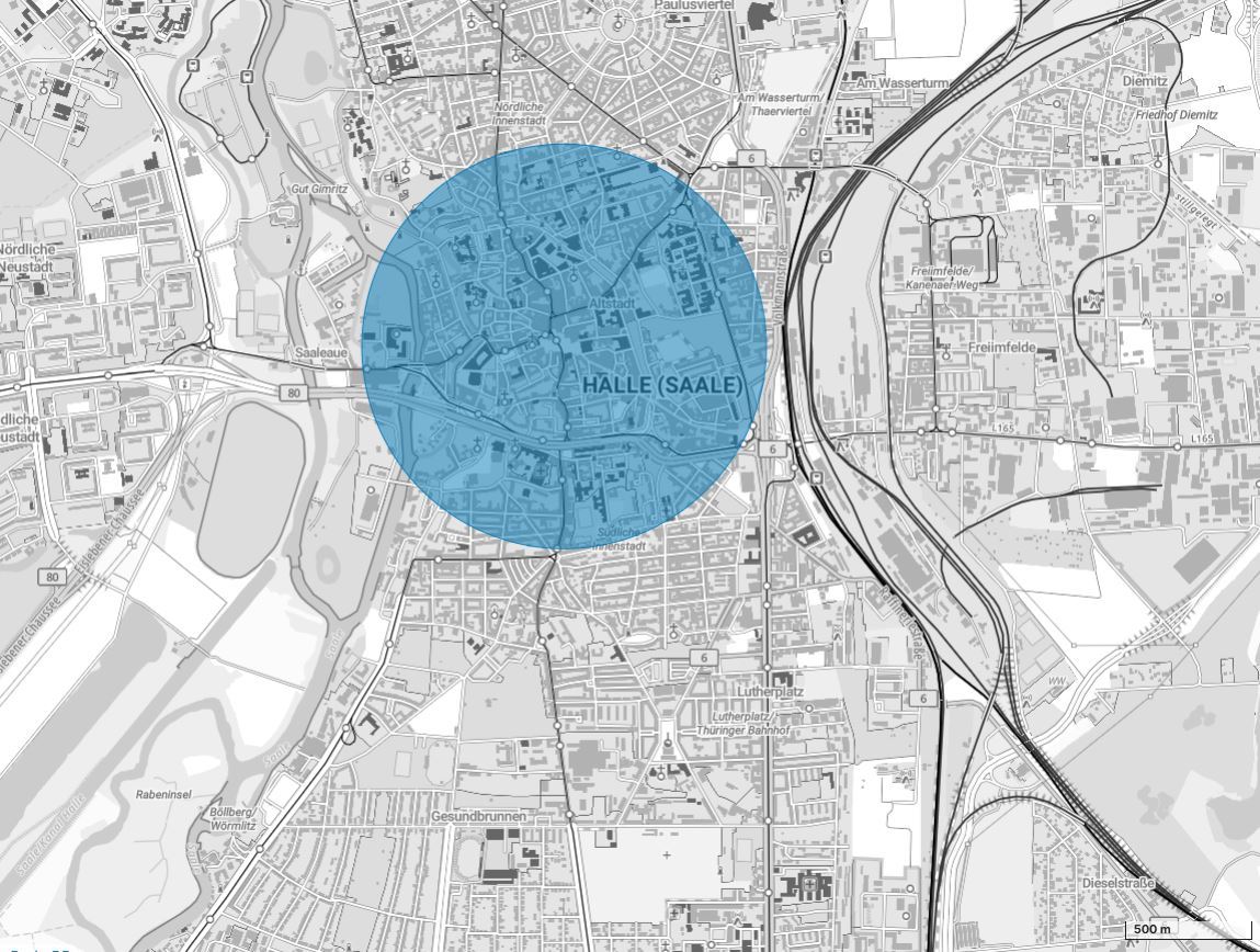 Am 03. Oktober von 14:00 Uhr (MESZ) bis 23:00 Uhr (MESZ) Uhr ist der Drohnenbetrieb in Halle eingeschränkt. In diesem Gebiet gelten die Vorgaben für geografische Gebiete gemäß § 21h Absatz 3 Nummer 11 Luftverkehrs-Ordnung.
